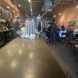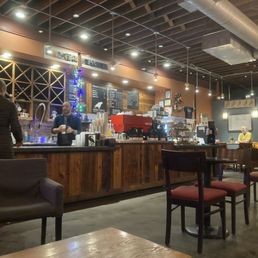Cool vibe. Not much food. Coffee served too hot. Okay place Eh. Seen better coffee houses. Seen worse. Good hang out Nothing to write home about.